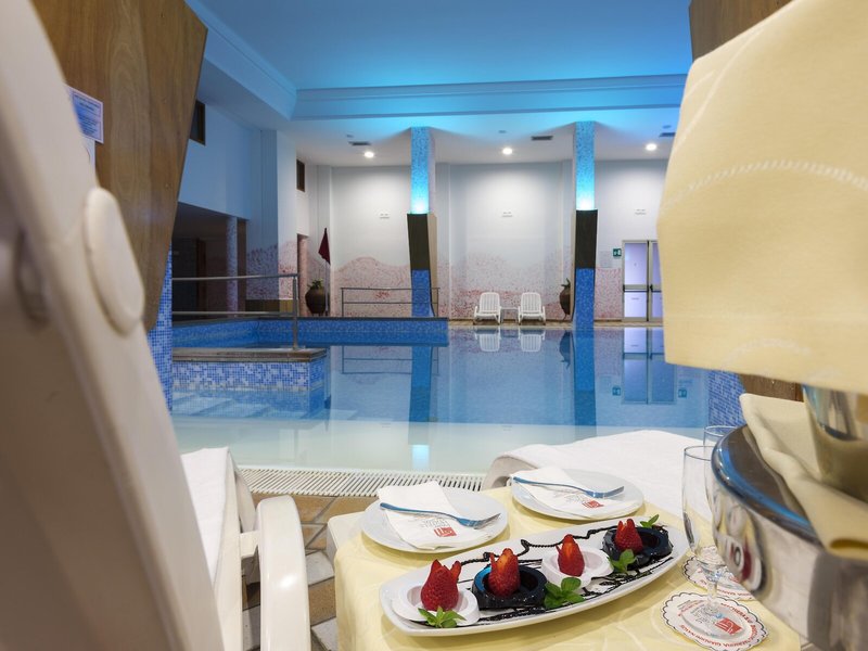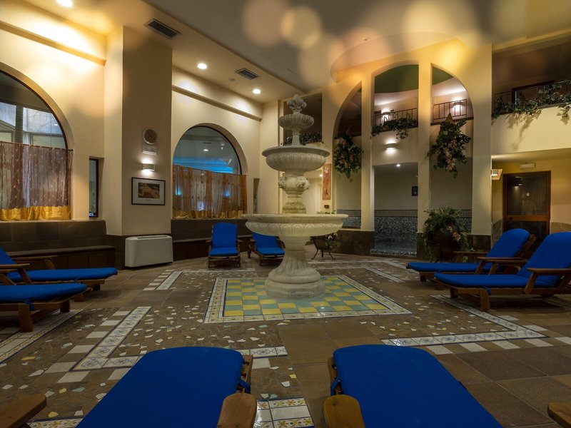 Sport & Fitness: Angenehm beheiztes Wasser im Poolbereich mit Innen- und Außenbecken sorgt für ein gesundes Badeerlebnis. Auch ein Kinderbadebereich ist vorhanden. Erfrischende Getränke an der Pool-/Snackbar und wohlige Entspannung im Whirlpool bringen alle Wasserratten in die beste Stimmung. Auf der Sonnenterrasse mit Liegestühlen und Schirmen lässt sich der Urlaub genießen. Wem der Sinn nach Bewegung steht, werden Radfahren/Mountainbiking und Tennis angeboten. Freunden des Wassersports wird Aqua-Fitness angeboten. Fitnessstudio, Gymnastik und Aerobic sind Teil des Sport- und Freizeitangebots des Hotels. Im Haus werden verschiedene Wellnessangebote wie Spa, Sauna, Dampfbad, Hammam, Schönheitssalon, Massage-Anwendungen und Solarium offeriert. Die Unterbringung bietet viele Unterhaltungsangebote, darunter ein Animationsprogramm, ein Miniclub und Live-Musik.