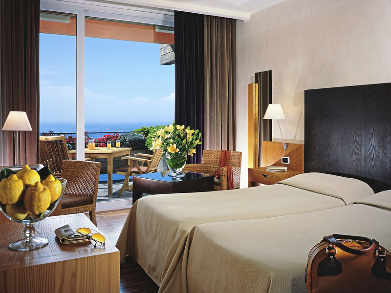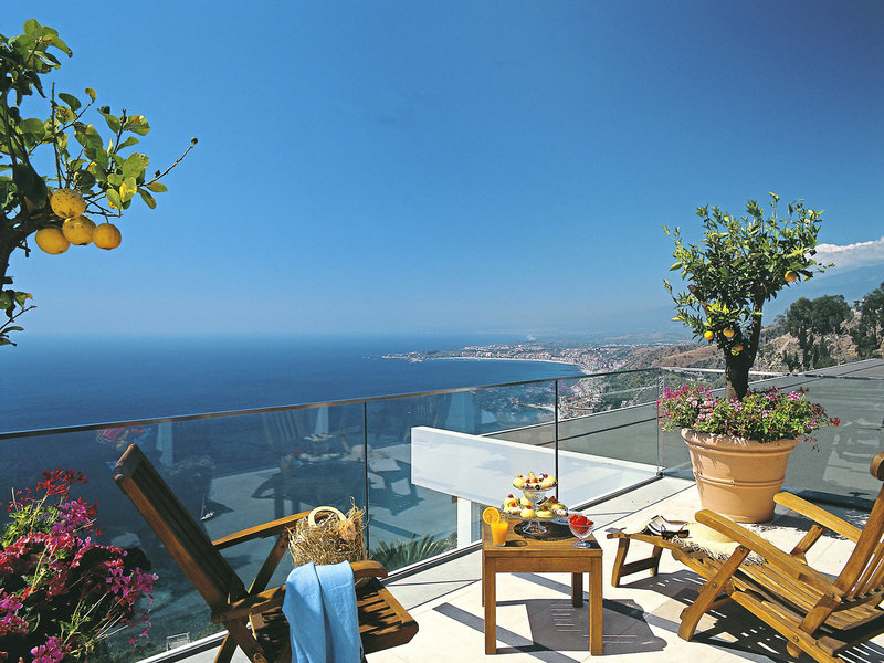 Lage & Umgebung Das terrassenförmig an den Hang gebaute Hotel bietet einen wundervollen Blick auf die Naxosbucht und den Ätna. Der Zugang zum Hotel führt über einen steilen Weg. Zum “Corso Umberto“ sind es nur etwa 5 Gehminuten, zur Seilbahnstation ca. 15 Minuten. Öffentliche Tennisplätze und der Stadtpark befinden sich in ca. 2 Minuten Entfernung. Shuttle zum Strand "Lido Tropicana" vom ca. 01.05.-30.09. (gegen Gebühr).