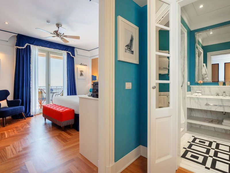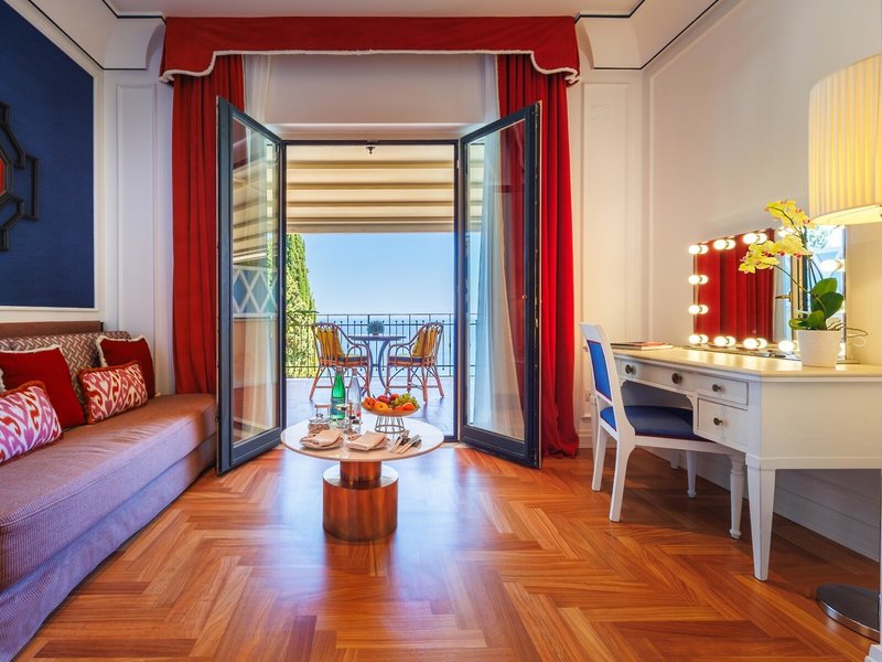 - Suita Junior (JSM2), suita Junior, nefajčiarska izba, v hlavnej budove, morská strana, výhľad na more, cca 35 - 40 m², celkový počet izieb v tomto type izby: 1, rozloženie: kombinovaná obývacia izba /spálňa, detská postieľka: bez poplatku, na vyžiadanie & nutná rezervácia, klimatizácia: zadarmo, individuálne nastaviteľná, studená, teplá, podlaha: parkety, trezor: zdarma, písací stôl, minibar: za poplatok, nealko: za poplatok, voda: za poplatok, alkoholické nápoje: za poplatok, občerstvenie: za poplatok, telefón, internet: WLAN/WiFi: bez poplatku, TV: plochá obrazovka, v spálni, nemecký program, satelitná TV, DVD prehrávač, izbová služba: za poplatok, vaňa, WC, župan: bez poplatku, papuče: bez poplatku, fén, kozmetické zrkadlo, balkón alebo terasa: s posedením