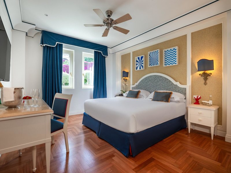 - Deluxe Family (FZX1), rodinná izba, nefajčiarska izba, v hlavnej budove, morská strana, výhľad na more, výhľad na bazén, cca 40 m², celkový počet izieb v tomto type izby: 2, rozloženie: pozostáva z 2 dvojposteľové izby so spojovacími dverami, detská postieľka: bez poplatku, vyžiadanie a rezervácia nutná, klimatizácia: zadarmo, individuálne nastaviteľná, studená, teplá, podlaha: parkety, trezor: zadarmo, písací stôl, minibar: za príplatok, telefón, Internet: WLAN/WiFi: zadarmo, TV: plochá obrazovka, SKY programy, Izbová služba: za poplatok, vaňa, WC, župan: bez poplatku, papuče: bez poplatku, 2 kúpeľne, fén, kozmetické zrkadlo, balkón alebo terasa: s posedením
