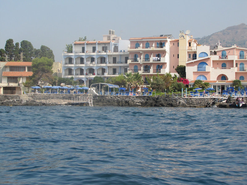 Poloha a okolie Hotel sa nachádza na pokojnom mieste, priamo pri mori, s vlastnou skalnatou plážou a mólom na kúpanie. Verejná piesočnatá pláž je vzdialená len cca 600 m. Na Naxos sa dostanete po cca 6 km a do centra Giardini Naxos po cca 1000 m.