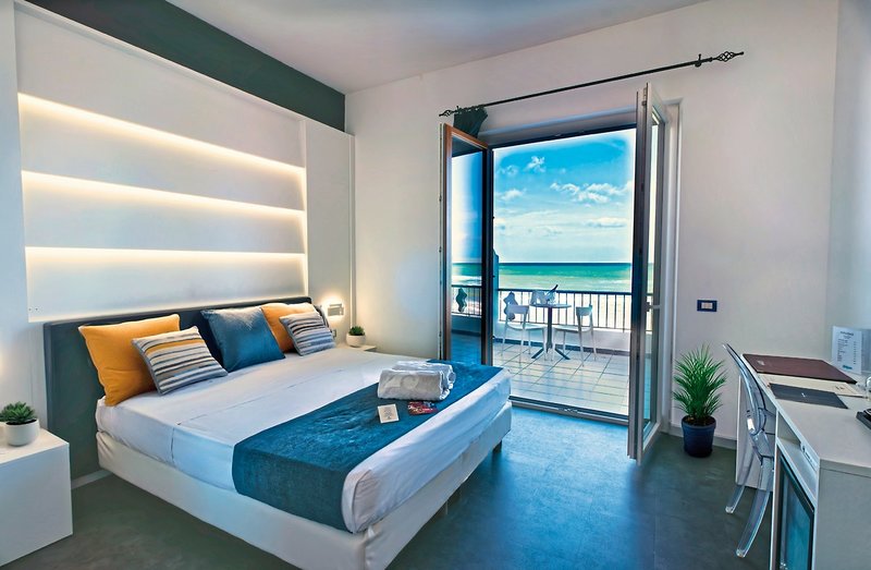 - 16-20 qm, Doppel, Meerblick, Schreibtisch, Doppelbett, Sofabett, Dusche, Bidet, WC, Bademantel (kostenpflichtig), Badeslipper, Haartrockner, Fliesen, Klimaanlage, individuell regulierbar, Heizung, individuell regulierbar, Minibar kostenpflichtig, Safe, TV (Sat-TV), WLAN, Wasserkocher, Kaffee/Tee, Balkon oder Terrasse, schallisolierte Fenster