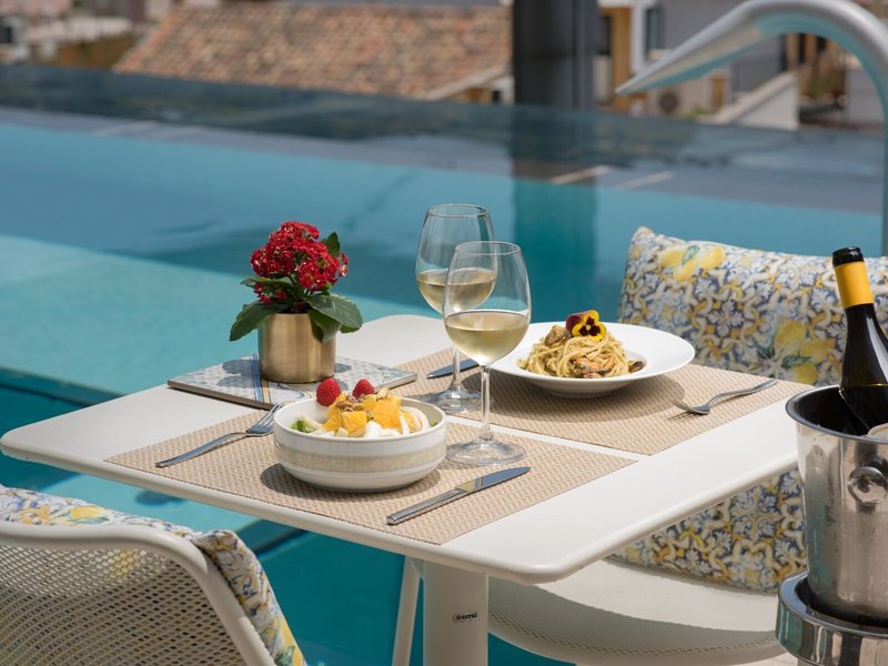 - Restaurant „Zefiro Bar & Restaurant“: Küche: italienisch, mediterran, regional, Fisch/Meeresfrüchte, Babynahrung, Diätküche, glutenfreie Gerichte, lactosefreie Gerichte, saisonale Gerichte, Trennkost, vegetarische Gerichte, vegane Gerichte, Vollwertkost, à la carte, gesetztes Menü, März - Januar, täglich, mit Terrasse, Kinderhochstuhl