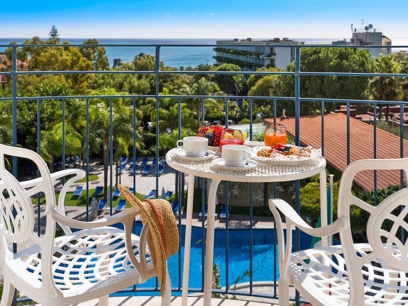 - Junior Suite s výhľadom na more (JSX1), Junior Suite, Pri mori, Pri bazéne, Výhľad na more, Výhľad na bazén, posledná čiastočná rekonštrukcia 2016, kombinovaná obývacia izba/spálňa, 1 manželská posteľ (180x200cm), 1 rozkladacia pohovka (170x200cm), 1 prístelka, detská postieľka: zadarmo, klimatizácia: individuálne ovládaná, centrálne ovládaná, chladenie, teplo, kúrenie: individuálne ovládané, podlaha: dlažba, trezor: zadarmo, stropný ventilátor, pohovka, telefón, internet: Wi-Fi, TV: nemecké kanály, Deutsche Welle, satelitná TV, vaňa alebo sprcha, WC, fén, balkón, balkón alebo terasa, terasa