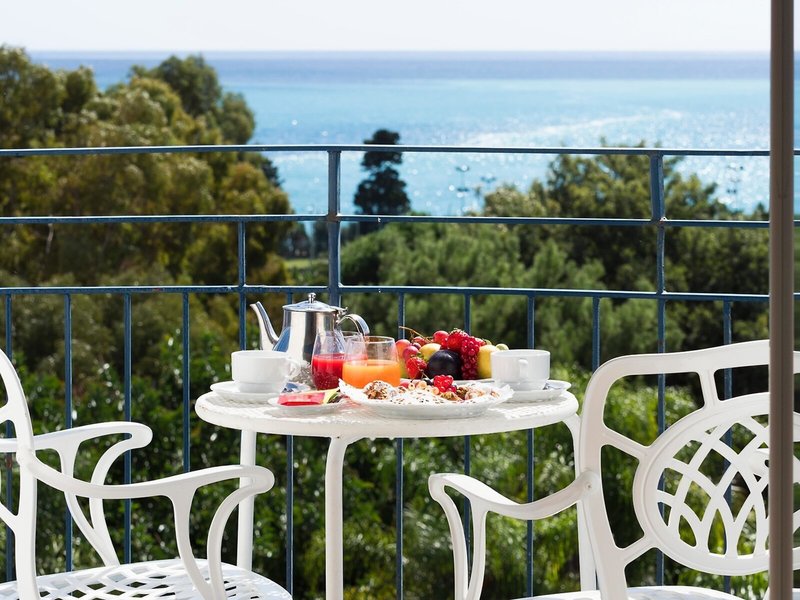 - Double Sea View (DZM1), Doppelzimmer, Nichtraucherzimmer, Meerseite, Meerblick, letzte Teilrenovierung 2016, 1 Zustellbett, Babybett: ohne Gebühr, Klimaanlage: individuell regelbar, kalt, warm, Heizung: individuell regelbar, Fußboden: Fliesenboden, Safe: ohne Gebühr, Schreibtisch, Minibar: gegen Gebühr, Telefon, Internet: WLAN/WiFi, Fernseher: Flatscreen, deutsches Programm, Deutsche Welle, Sat-TV, Badewanne oder Dusche, WC, Föhn, Balkon, Balkon oder Terrasse, Terrasse