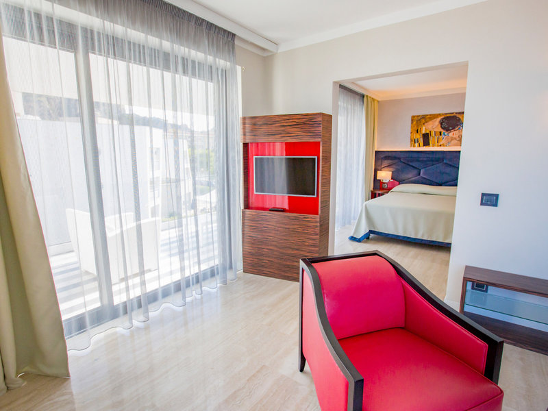 - Suita s výhľadom na more (SUM1), suita, v hlavnej budove, morská strana, výhľad na more, bočný výhľad na more, cca 33 - 48 m², celkový počet izieb v tomto type izby: 1, rozloženie: 1 spálňa, 1 manželská posteľ, detská postieľka: bez poplatku, dopyt a rezervácia nutná, klimatizácia: bez poplatku, individuálne nastaviteľná, studená, teplá, trezor: bez poplatku, minibar: za poplatok, Internet: WLAN/WiFi: bez poplatku, televízor: plochá obrazovka, nemecký program, izbová služba: za poplatok, Upratovacia služba: zdarma, sprcha, WC, balkón: s posedením