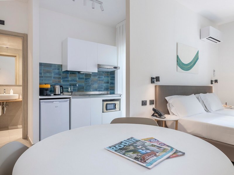 - Superior Studio, Balcony, Max 3 (STG4), Studio, Nichtraucherzimmer, Gartenblick, Gesamtanzahl der Räume in diesem Zimmertyp: 1, Aufteilung wie folgt: kombiniertes Wohn-/Schlafzimmer, 2 Einzelbetten (90x210cm), 1 Schlafsofa (85x190cm), Babybett: ohne Gebühr, Anfrage & Reservierung notwendig, Klimaanlage: ohne Gebühr, individuell regelbar, kalt, warm, Fußboden: Fliesenboden, Safe, Kochnische, Kühlschrank, Kochplatte, Mikrowelle, Nespressomaschine, Wasserkocher, Toaster, Esstisch, Internet: WLAN/WiFi: ohne Gebühr, Fernseher: Flatscreen, Reinigungsservice: wöchentlich, ohne Gebühr, Dusche, WC, Föhn, Balkon: mit Sitzgelegenheit