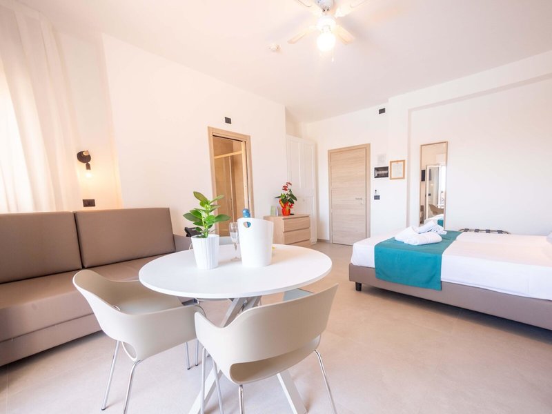 - Štúdio Superior, balkón, Max 3 (STG4), štúdio, nefajčiarska izba, výhľad do záhrady, celkový počet izieb v tomto type izby: 1, rozloženie takto: kombinovaná obývacia izba/spálňa, 2 samostatné postele (90x210cm), 1 rozkladacia pohovka (85x190cm), detská postieľka: bez poplatku, nutná vyžiadanie a rezervácia, klimatizácia: bez poplatku, individuálne nastaviteľná, studená, teplá, podlaha: dlažba, trezor, kuchynský kút, chladnička, varná doska, mikrovlnná rúra, kávovar Nespresso, rýchlovarná kanvica, hriankovač, jedálenský stôl, Internet: WLAN/WiFi: bez poplatku , TV: plochá obrazovka, upratovanie: týždenne, zdarma, sprcha, WC, fén, balkón: s posedením