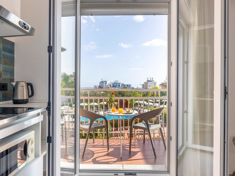 - Superior 1 Bdr, Balcony, Max 3 (APG9), Appartement, Nichtraucherzimmer, Meerseite, Poolblick, Gartenblick, Gesamtanzahl der Räume in diesem Zimmertyp: 2, Aufteilung wie folgt: kombiniertes Wohn-/Schlafzimmer, 1 Schlafzimmer, 1 Doppelbett (180x210cm), 1 Schlafsofa (85x190cm), Babybett: ohne Gebühr, Anfrage notwendig, Klimaanlage: ohne Gebühr, individuell regelbar, kalt, warm, Fußboden: Fliesenboden, Safe, Kochnische, Kühlschrank, Kochplatte, Mikrowelle, Nespressomaschine, Wasserkocher, Toaster, Esstisch, Internet: WLAN/WiFi: ohne Gebühr, Fernseher: Flatscreen, Reinigungsservice: wöchentlich, ohne Gebühr, Dusche, WC, Föhn, Balkon: mit Sitzgelegenheit