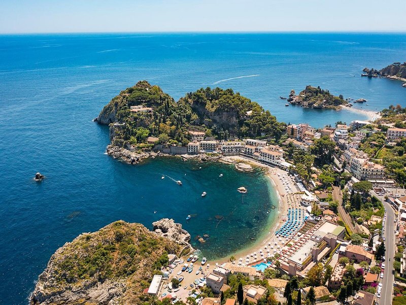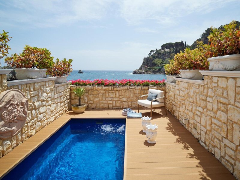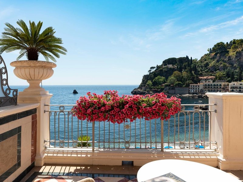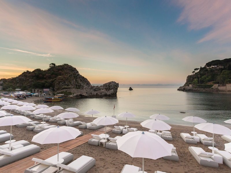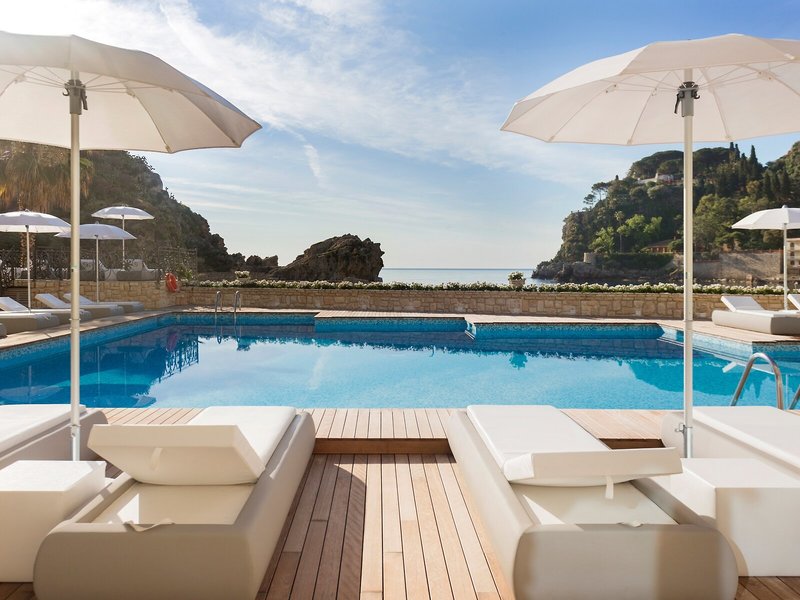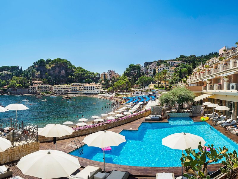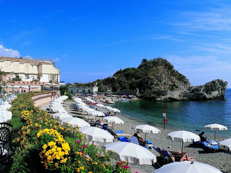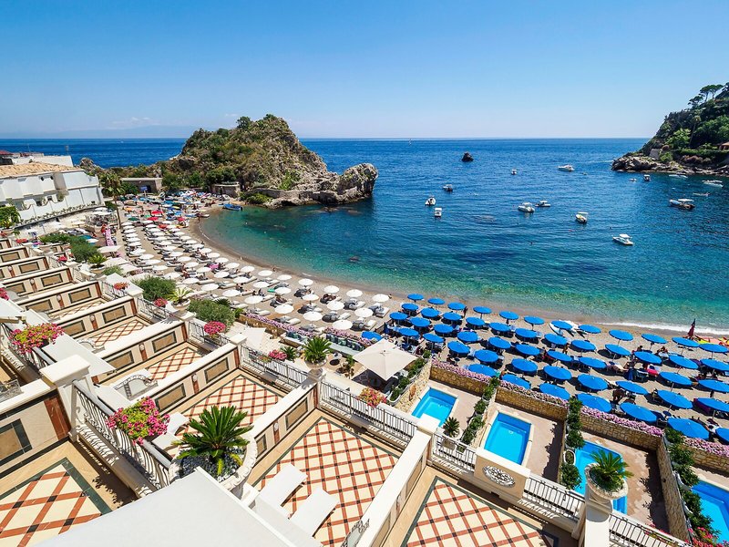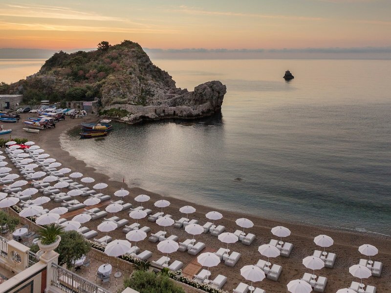 Poloha a okolie Tento exkluzívny luxusný hotel sa nachádza tesne pod centrom mesta Taormina, priamo v krásnej zátoke Mazzarò s vlastnou súkromnou kamienkovou plážou. Lanovka, ktorá vás do mesta dopraví každých 15 minút, je vzdialená približne 60 metrov. Obchody, reštaurácie a bary sa nachádzajú v okolí (približne do 100 metrov). Transfer na letisko Catania trvá približne 1,5 hodiny (60 km).