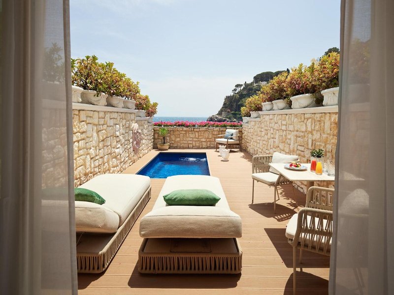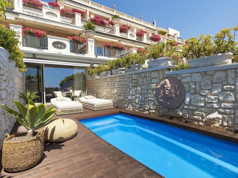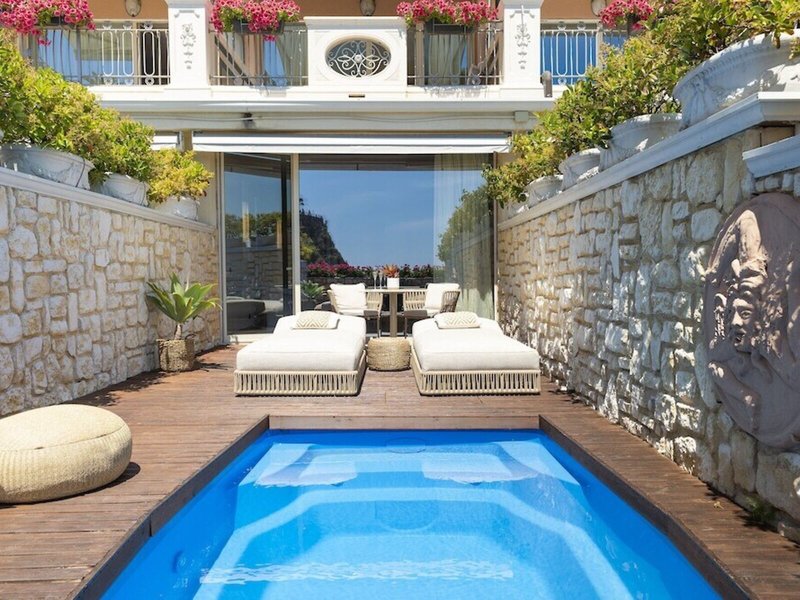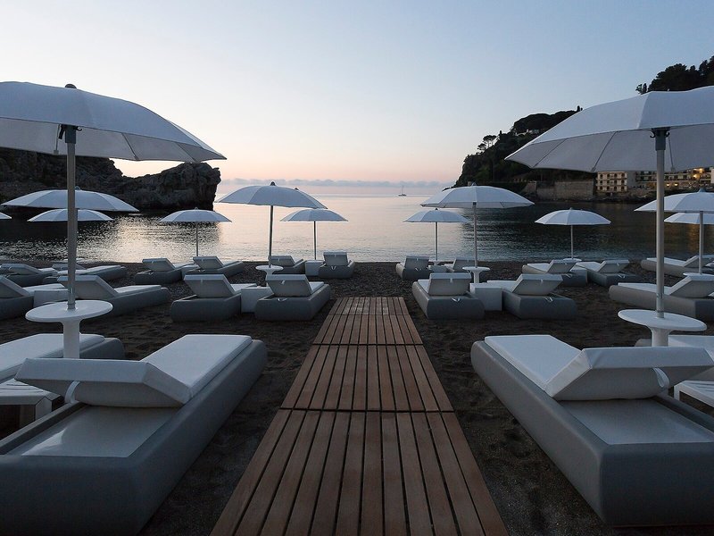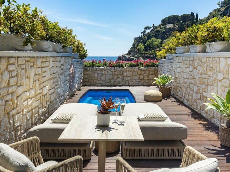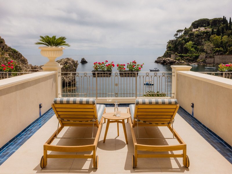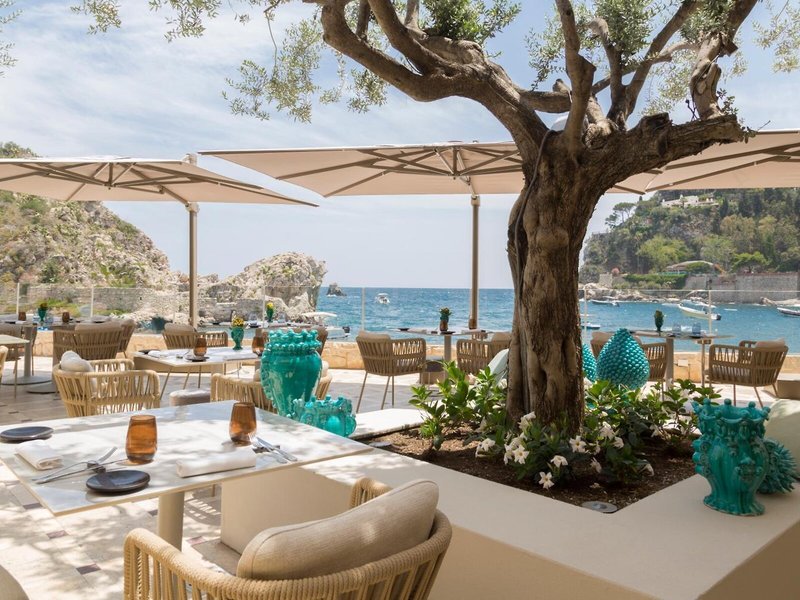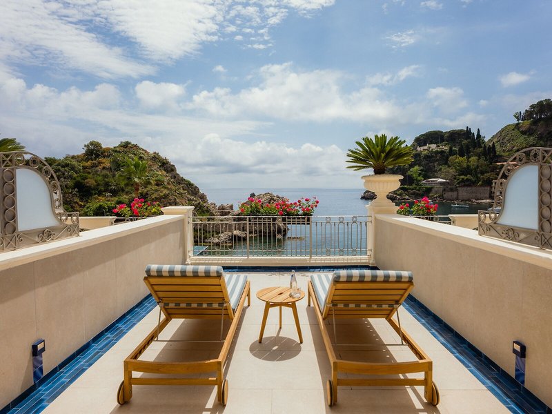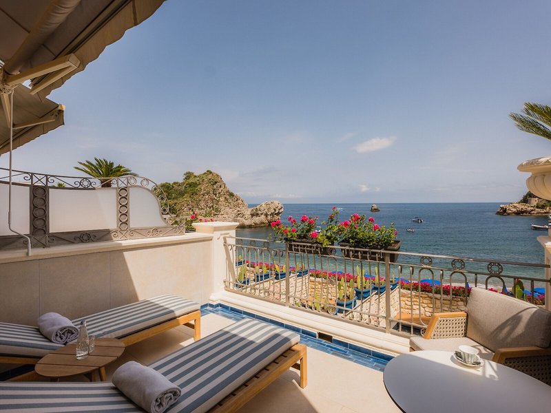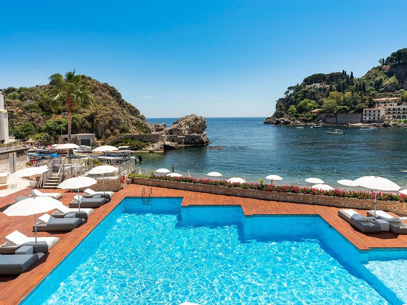 Poloha a okolie Tento exkluzívny luxusný hotel sa nachádza tesne pod centrom mesta Taormina, priamo v krásnej zátoke Mazzarò s vlastnou súkromnou kamienkovou plážou. Lanovka, ktorá vás do mesta dopraví každých 15 minút, je vzdialená približne 60 metrov. Obchody, reštaurácie a bary sa nachádzajú v okolí (približne do 100 metrov). Transfer na letisko Catania trvá približne 1,5 hodiny (60 km).