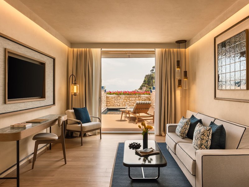 Vaše ubytovanie: Izby sú vybavené obývacou izbou, kuchyňou a kúpeľňou. Klimatizácia a kúrenie zabezpečujú príjemnú vnútornú klímu. Hostia si môžu vychutnať výhľad na more z balkóna alebo terasy. Izby sú vybavené manželskou posteľou a rozkladacou pohovkou. K dispozícii sú samostatné spálne. Prístelky je možné požiadať. K dispozícii je aj trezor, minibar a písací stôl. Telefón s priamou voľbou, satelitná/káblová TV, rádio a Wi-Fi (bezplatné) poskytujú maximálne pohodlie. K vybaveniu izieb patria papuče. Kúpeľne sú vybavené sprchovacím kútom, vaňou a vírivkou. Na denné použitie je k dispozícii sušič vlasov, župany a telefón. Hotel ponúka rodinné a nefajčiarske izby.