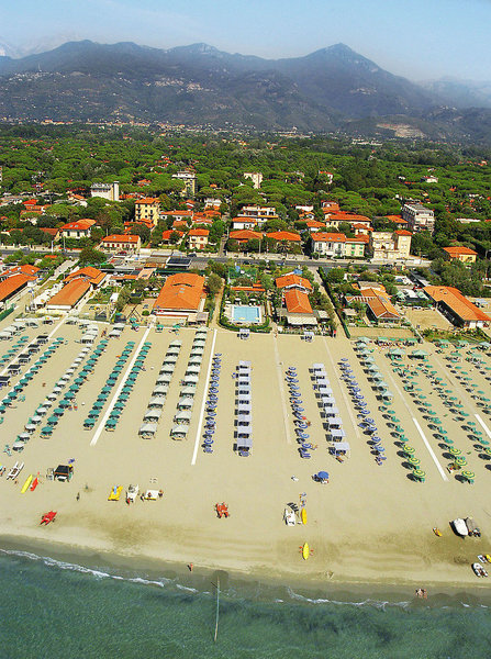 Lage & Umgebung Das Hotel liegt ruhig inmitten einer gepflegten Gartenanlage mit altem Baumbestand in einer ruhigen Nebenstraße in Marina di Pietrasanta. Zum Strand sind es ca. 300 m und das Ortszentrum Marina di Pietrasanta ist nur wenige Gehminuten entfernt. Nach Viareggio sind es ca. 10 km.