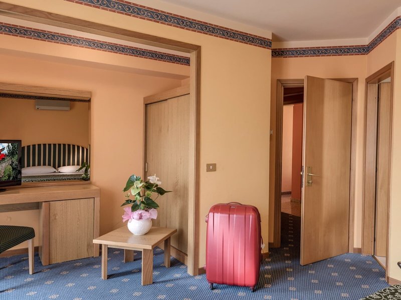 Vaše ubytovanie: Klimatizácia a kúrenie zabezpečujú príjemnú vnútornú klímu. Väčšina izieb má balkón alebo terasu. Izby sú vybavené manželskou posteľou a rozkladacou pohovkou. K dispozícii sú samostatné spálne. Prístelky je možné požiadať. K dispozícii je aj trezor a minibar. Telefón s priamou voľbou, satelitná/káblová TV a Wi-Fi pripojenie (bezplatné) poskytujú maximálne pohodlie počas dovolenky. Kúpeľňa je vybavená sprchovacím kútom a vaňou, sušičom vlasov a telefónom. K dispozícii sú bezbariérové izby. Hotel ponúka rodinné izby a 70 nefajčiarskych izieb.