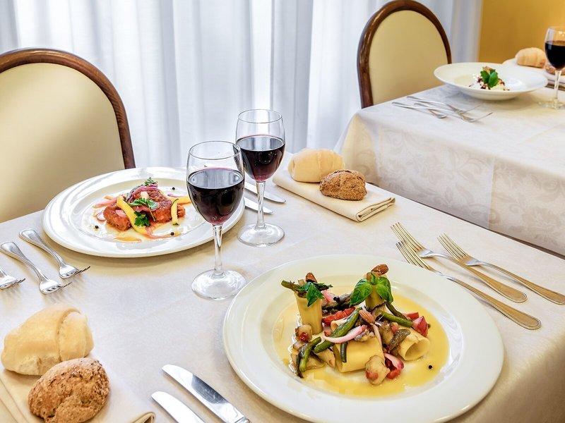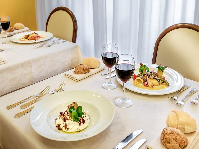 Jedlo a nápoje: Hotel ponúka nefajčiarsku reštauráciu, jedáleň, raňajkovú miestnosť, kaviareň a bar. Hotel ponúka ubytovanie s raňajkami, polpenziu a plnú penziu. Kontinentálne raňajky formou bufetu zaručujú dobrý štart do dňa. Pestrý raňajkový bufet je čerstvo pripravený a na obed a večeru si môžete objednať aj menu. Na požiadanie sú k dispozícii diétne jedlá, bezlepkové jedlá a detské menu. Hotel ponúka aj špeciálne cateringové služby.