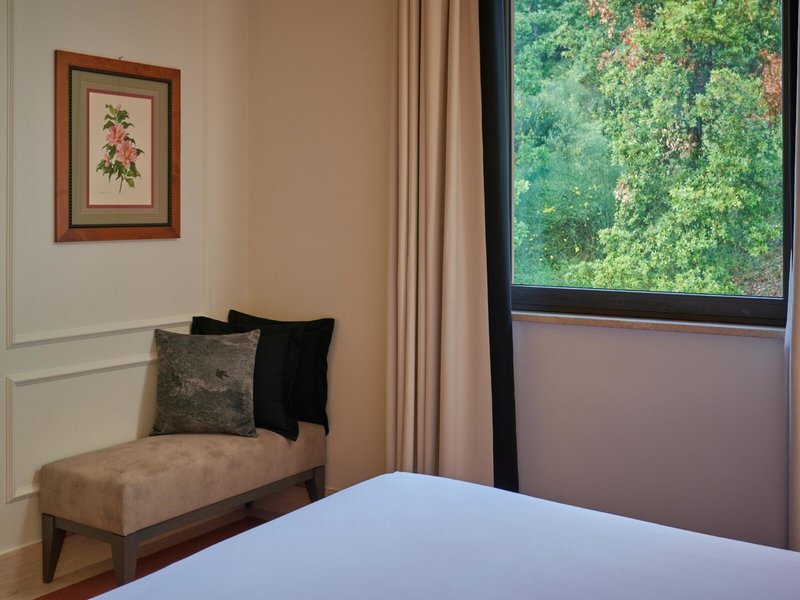 - Junior Suite s výhľadom do údolia a terasou (JSX1), Junior Suite, Nefajčiarska izba, orientovaná na západ, orientovaná do záhrady, výhľad na bazén, výhľad do záhrady, výhľad na údolie, cca 40 m², posledná kompletná rekonštrukcia 2021, Celkový počet izieb tohto typu: 1, Rozloženie: kombinovaná obývacia izba/spálňa, 1 manželská posteľ (180x200cm), 1 rozkladacia pohovka, Detská postieľka: zdarma, na požiadanie a rezerváciu je potrebná, Klimatizácia: zdarma, máj - október, individuálne ovládané, Kúrenie: november - apríl, individuálne ovládané, Podlaha: parkety, Trezor: zadarmo, Pohovka, Písací stôl, Kávovar/čajník, Kanvica, Telefón, Internet: Wi-Fi: zadarmo, TV: plochá obrazovka, Izbová služba: 7:30 - 00:00, za poplatok, Upratovacia služba: 9:00 - 18:00, za poplatok, Vaňa alebo sprchovací kút, WC, Župan: zadarmo, Fén, Terasa: s ležadlami