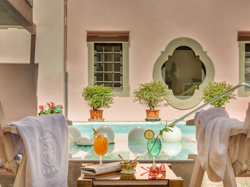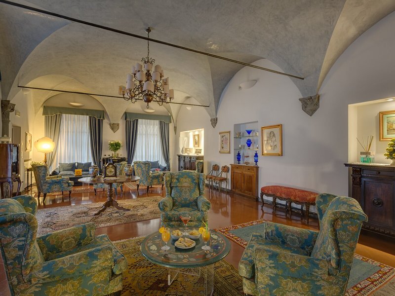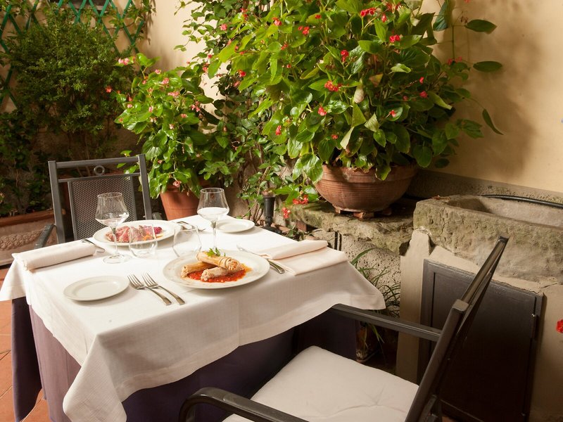 Lage & Umgebung Das traditionsreiche, in einem ehemaligen Franziskanerkloster des 15. Jahrhunderts errichtete, Hotel liegt im Herzen von Florenz, nicht weit entfernt vom Piazza Santa Maria Novella , dem Ausstellungs- und Kongreßzentrum, dem Dom, dem Ponte Vecchio und der Uffizzi Galerie, wo man Michelangelos berühmte David Skulptur bestaunen kann. Der Amerigo Vespucci Flughafen ist ca. 6 km vom Hotel entfernt. Man geht nur wenige Minuten zu den öffentlichen Verkehrsmitteln.