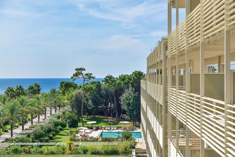 Dieses moderne Hotel ist eine echte Bereicherung für die Versilia-Küste. Geradlinig, luftig mit viel Glas und Grün hebt es sich aus dem vorherrschenden Stil des frühen 19. Jahrhunderts hervor und gibt den perfekten Rahmen für die wechselnden Ausstellungen moderner Kunst in Zusammenarbeit mit Passapartout unconventional gallery.