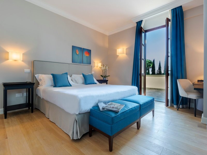Vaše ubytovanie: Izby sú vybavené klimatizáciou a kúrením. Hostia si môžu vychutnať výhľad do záhrady zo svojho balkóna alebo terasy. Izby sú vybavené manželskou posteľou veľkosti king a rozkladacou pohovkou. Prístelky je možné požiadať. K dispozícii je aj trezor, minibar a písací stôl. K dispozícii je aj minichladnička a príslušenstvo na prípravu čaju/kávy. Pre pohodlie hostí je k dispozícii žehliaca súprava. Okrem toho je k dispozícii telefón s priamou voľbou, TV so satelitnými/káblovými programami, rádio, budík a Wi-Fi pripojenie na internet. Záverečné upratovanie je tiež zabezpečené. K vybaveniu izieb patria papuče. Kúpeľne sú vybavené sprchovacím kútom, vaňou a bidetom. K dispozícii je sušič vlasov a telefón na denné použitie. Ako špeciálne vybavenie sú k dispozícii toaletné potreby a výber uterákov v kúpeľniach. K dispozícii sú aj bezbariérové izby s bezbariérovou kúpeľňou. Hotel ponúka rodinné, nefajčiarske a fajčiarske izby.