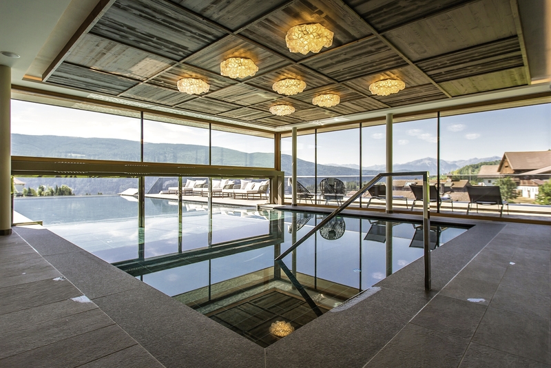 Lassen Sie die Seele baumeln im modernen 4-stöckigen SPA „Torrentes” mit ausgewiesenem Adulty-only-Bereich umgeben vom warmen Duft heimischer Hölzer, ätherischer Öle und harmonischer Lichteffekte. Lassen Sie sich im In - und Outdoorpool Panorama-Skypool mit einzigartigem Blick auf die Berge durchs Wasser gleiten und genießen Sie die Sonnenstrahlen auf der Haut beim Schwimmen. Das Saunaparadies mit Open-Air-Sauna im 3.Stock, Bio-Softsauna, Dampf- und Aromasauna ist ein Rückzugsort aus dem Alltag. Mehrmals pro Woche werden aromatische Peelings im Dampfbad angeboten. Weiterhin finden 2x täglich Themenaufgüsse in der Eventsauna statt. Ein großer Sunrise-Whirlpool mit Terrasse im 4. Stock beschert Ihnen Wohlfühlmomente mit Wasser auf der Haut und der Sonne im Gesicht. Zusätzlich bieten Massage- und Ruheräume mit 360 Grad Verglasung einen fantastischen Ausblick auf die Bergwelt. Eine Abkühlung bringt das Tauchbecken, der Eisbrunnen oder die Erlebnisduschen, während eine gut gefüllte Teebar Sie wieder aufwärmt.