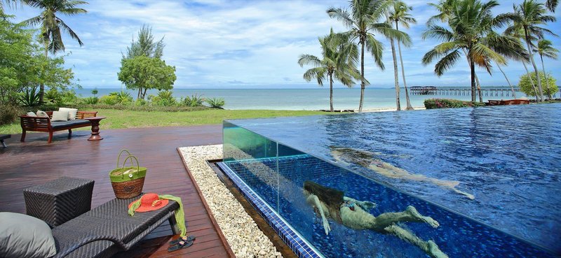 Prestige Oceanfront Pool Villa: Bei gleicher Ausstattung wie die Luxury Garden Pool Villa, jedoch geräumiger und mit separatem Schlafzimmer und Wohnbereich (NV2/NV1). (Mindestalter bei Kindern 6 J.)