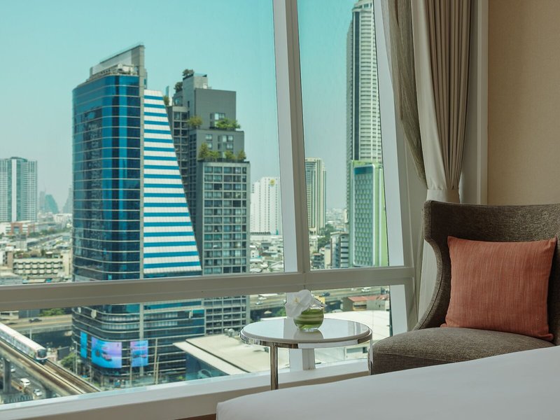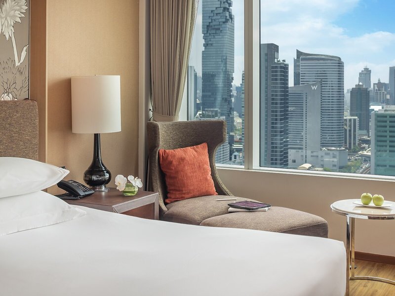 Poloha a okolie Hotel sa môže pochváliť vynikajúcou polohou v obchodnej štvrti Sathorn s výhľadom na svetoznámu rieku Chao Phraya. Nachádza sa na diaľnici vedúcej na letisko Suvarnabhumi (45 minút jazdy autom). Hotel má vlastný nadzemný most, ktorý hosťom umožňuje jednoduchý prístup do centra mesta pomocou nadzemnej dráhy Surasak BTS Skytrain, ktorá spája hotel s ostatnými časťami mesta.