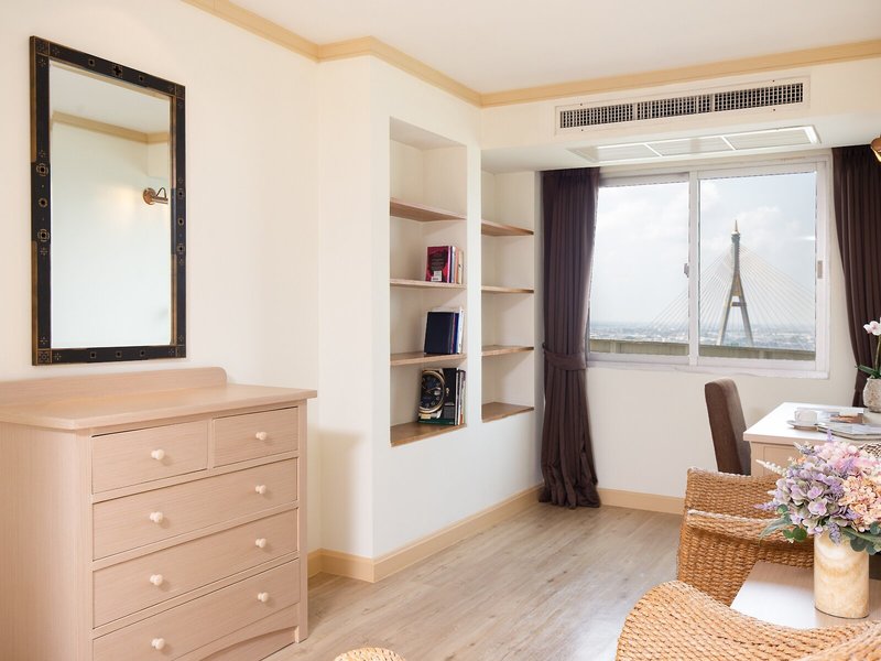Lage & Umgebung Dieses familienfreundliche Hotel steht am Flussufer von Chao Phraya, an der Straße Rama III, und die Gäste erfreuen sich an der günstigen Lage, die eine leichte Erreichbarkeit von Bangkoks Geschäfts- und Unterhaltungsviertel sowie der Autobahnen garantiert. Die nächsten Anbindungen an die öffentlichen Verkehrsmittel (BTS- und MRT-Haltestellen) sind ungefähr 10 min vom Hotel entfernt. Die Sehenswürdigkeiten in Siam kann man in ungefähr 30 Autominuten erreichen, und zu den Flughäfen Don Mueang und Suvarnabhumi sind es jeweils rund 40 km und 50 km.