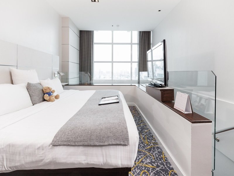 Lage & Umgebung Das Hotel liegt in einem von Bangkoks wichtigsten Zentren, nur ca. 5 min zu Fuß von den BTS-Skytrain-Bahnhöfen Asoke und Phrom Phong sowie etwa 2 km von der Station Makkasan, dem Bangkok City Air Terminal mit Anbindung zum Flughafen, entfernt. Der Flughafen Suvarnabhumi ist ungefähr 20 km vom Hotel entfernt.