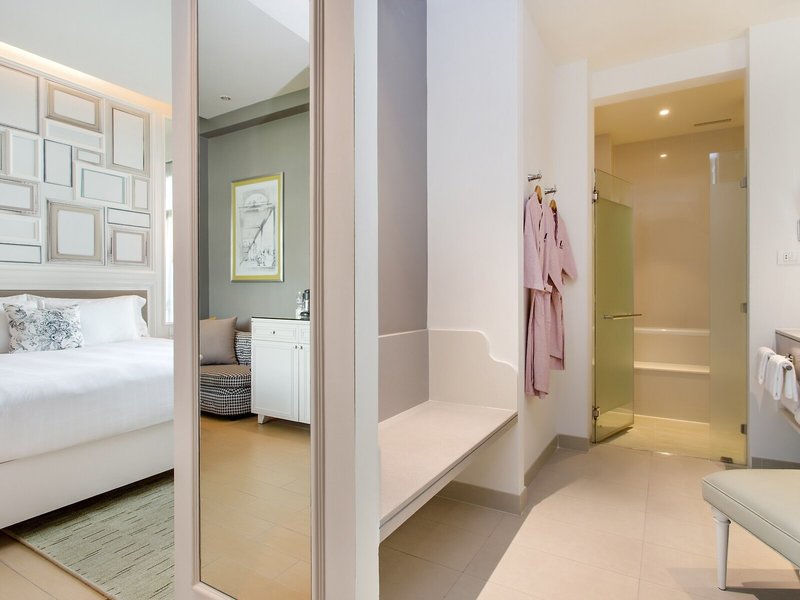 So wohnen Sie: Für angenehmes Raumklima in den Zimmern sorgen eine Klimaanlage und ein Ventilator. Balkon oder Terrasse gehören zur Standardausstattung der meisten Zimmer. Die Zimmer verfügen über ein Doppelbett oder ein Kingsize-Bett. Zustellbetten können angefordert werden. Außerdem sind ein Safe, eine Minibar und ein Schreibtisch verfügbar. Auch ein Kühlschrank und eine Tee-/Kaffeemaschine sind vorhanden. Ferner gibt es ein Bügelset, eine Hosenpresse und einen Wäschetrockner. Besten Urlaubskomfort bieten ein Telefon, Sat-TV, ein CD-Player, ein DVD-Player, ein Steckdosenadapter, ein Wecker und WiFi. Zu den Vorzügen der Zimmer gehören Hausschuhe. Die Badezimmer sind ausgestattet mit einer Dusche und einer Badewanne. Für den täglichen Gebrauch stehen ein Haartrockner, ein Kosmetikspiegel, Bademäntel und ein Telefon zur Verfügung. Als Besonderheit genießen die Gäste in den Badezimmern Kosmetikartikel und eine Auswahl an Handtüchern. Buchbar sind rollstuhlgerechte Zimmer. Die Anlage bietet Nichtraucher- und Raucherzimmer.