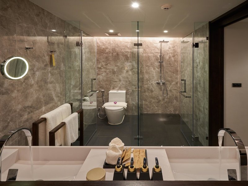 - Pool Villa (BUX1), Bungalow, Nichtraucherzimmer, Gartenseite, Gartenblick, ca. 123 m², Gesamtanzahl der Räume in diesem Zimmertyp: 1, Aufteilung wie folgt: kombiniertes Wohn-/Schlafzimmer, Babybett: ohne Gebühr, Klimaanlage: ohne Gebühr, zentral gesteuert, kalt, Safe: ohne Gebühr, Sofa, Schreibtisch, Kühlschrank: ohne Gebühr, Kaffeemaschine, Espressomaschine, Kaffee-/Teezubereiter, Wasserkocher, Minibar: gegen Gebühr, Softdrinks: gegen Gebühr, Wasser: ohne Gebühr, alkoholische Getränke: gegen Gebühr, Snacks: gegen Gebühr, Minibarauffüllung: 08:00 Uhr - 18:00 Uhr, Telefon, Internet: WLAN/WiFi: ohne Gebühr, Fernseher: Flatscreen, Kabel-TV, Roomservice: täglich, gegen Gebühr, Reinigungsservice: täglich, ohne Gebühr, Dusche, Badewanne, WC, Bad durch Glaswand getrennt, Föhn, Kosmetikspiegel, Terrasse: mit Liegen, Loggia, mit Private Pool, mit Privat-Garten