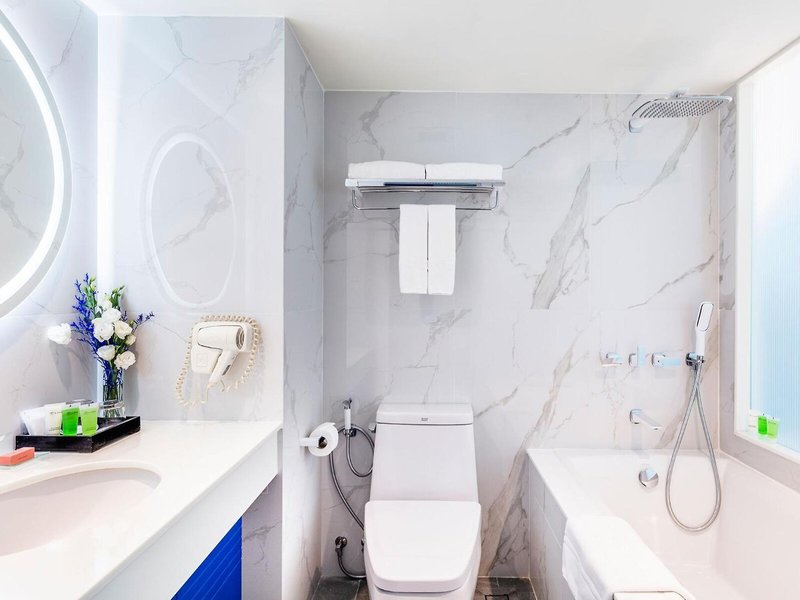 So wohnen Sie: Für angenehmes Raumklima in den Zimmern sorgt eine Klimaanlage. In den meisten Unterkünften genießen die Gäste von Balkon oder Terrasse einen Ausblick auf das Meer. Die Zimmer verfügen über ein Doppelbett. Es sind separate Schlafzimmer vorhanden. Zustellbetten können angefordert werden. Außerdem sind ein Safe, eine Minibar und ein Schreibtisch verfügbar. Auch ein Kühlschrank und eine Tee-/Kaffeemaschine sind vorhanden. Besten Urlaubskomfort bieten ein Telefon, ein TV-Gerät, ein Radio und WiFi (ohne Gebühr). Zu den Vorzügen der Zimmer gehören Hausschuhe. Die Badezimmer sind ausgestattet mit einer Dusche und einer Badewanne. Für den täglichen Gebrauch stehen ein Haartrockner, Bademäntel und ein Telefon zur Verfügung. Als Besonderheit genießen die Gäste in den Badezimmern Kosmetikartikel und eine Auswahl an Handtüchern. Buchbar sind rollstuhlgerechte Zimmer. Das Hotel bietet Familien- und Nichtraucherzimmer.