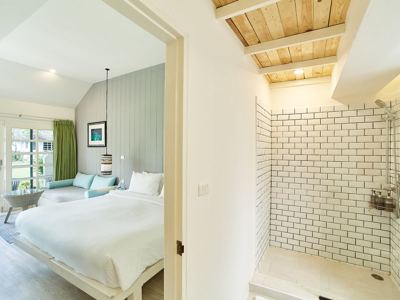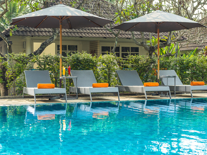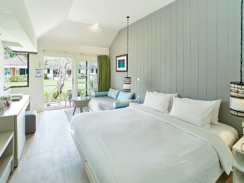 - Baansiri Cottage (BUX1), Bungalow, Poolseite, Gartenseite, Poolblick, Gartenblick, ca. 30 m², letzte Teilrenovierung 2015, Gesamtanzahl der Räume in diesem Zimmertyp: 1, Aufteilung wie folgt: kombiniertes Wohn-/Schlafzimmer, 1 Doppelbett, Klimaanlage, Fußboden: Fliesenboden, Laminat, Safe, Sofa, Minibar: Wasser: ohne Gebühr, Telefon, Internet: WLAN/WiFi: ohne Gebühr, Fernseher: Flatscreen, Dusche, WC, Balkon: mit Sitzgelegenheit, Terrasse: mit Sitzgelegenheit