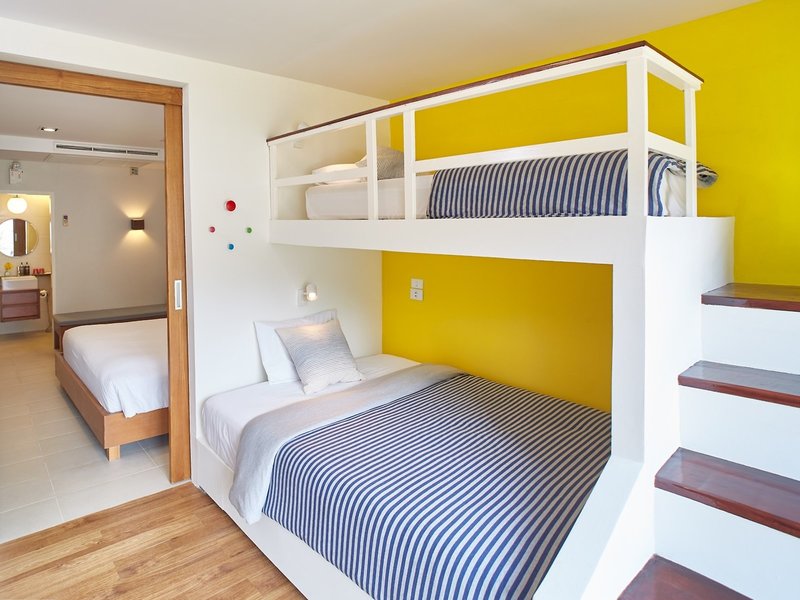 - Family Suite (FZX1), Familienzimmer, Nichtraucherzimmer, Gartenseite, Gartenblick, ca. 39 m², Gesamtanzahl der Räume in diesem Zimmertyp: 2, Aufteilung wie folgt: Kinderzimmer, 1 Schlafzimmer, 1 King Size Bett, 1 Etagenbett, Klimaanlage, Fußboden: Fliesenboden, Safe: ohne Gebühr, Wasserkocher, Minibar: Wasser: ohne Gebühr, Telefon, Internet: WLAN/WiFi: ohne Gebühr, Fernseher: Flatscreen, Reinigungsservice: täglich, ohne Gebühr, Dusche, WC, Terrasse: mit Sitzgelegenheit
