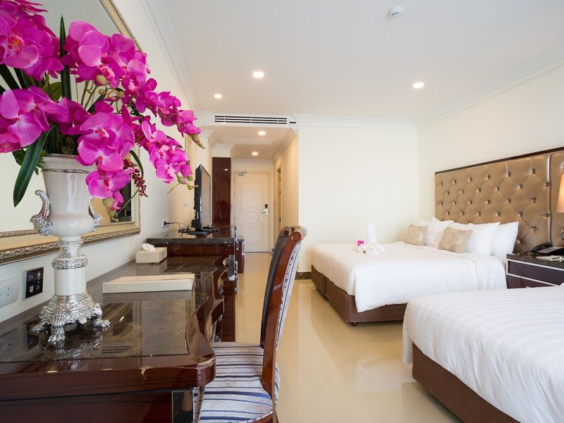 Vaše ubytovanie: Klimatizácia zabezpečuje príjemnú klímu v izbách. Väčšina izieb má balkón alebo terasu. Hostia sa môžu pohodlne vyspať na manželskej posteli. Prístelky je možné požiadať. K dispozícii je aj trezor, minibar a písací stôl. Štandardom je aj chladnička, mikrovlnná rúra a zariadenie na prípravu čaju/kávy. K vybaveniu patrí telefón, TV so satelitnými/káblovými programami, DVD prehrávač, budík a Wi-Fi pripojenie na internet (bezplatné). K vybaveniu izieb patria papuče. Kúpeľňa so sprchovacím kútom a vaňou ponúka sušič vlasov a župany. Pre väčšie pohodlie sú k dispozícii toaletné potreby a výber uterákov. Hotel ponúka rodinné, nefajčiarske a fajčiarske izby.