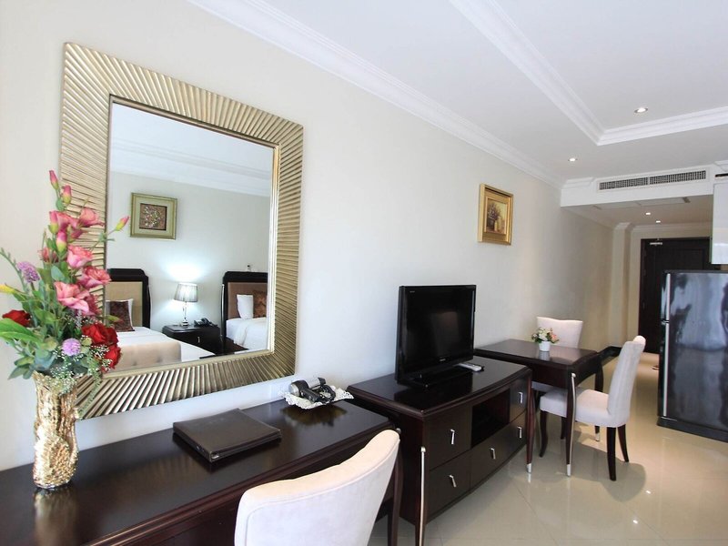 So wohnen Sie: In den Zimmern gibt es eine Küche und ein Badezimmer, für angenehmes Raumklima sorgt eine Klimaanlage. Auf Balkon oder Terrasse lässt es sich für die Gäste herrlich entspannen. Die Zimmer verfügen über ein Doppelbett, ein Queensize-Bett oder ein Kingsize-Bett. Es sind separate Schlafzimmer vorhanden. Zustellbetten können angefordert werden. Außerdem sind ein Safe, eine Minibar und ein Schreibtisch verfügbar. In der Kochnische befinden sich ein Kühlschrank, eine Mikrowelle und eine Tee-/Kaffeemaschine. Darüber hinaus sind ein Telefon, ein TV-Gerät, ein CD-Player, ein DVD-Player und WiFi (ohne Gebühr) vorhanden. Zu den Vorzügen der Zimmer gehören Hausschuhe. Die Badezimmer sind ausgestattet mit einer Dusche, einer Badewanne und einem Bidet. Für den täglichen Gebrauch stehen ein Haartrockner und Bademäntel zur Verfügung. Als Besonderheit genießen die Gäste in den Badezimmern Kosmetikartikel und eine Auswahl an Handtüchern. Das Hotel bietet Familien- und Nichtraucherzimmer.