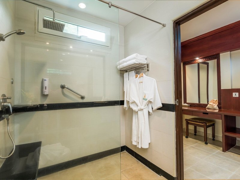 - Deluxe Room Garden View (DZX2), Doppelzimmer, Nichtraucherzimmer, Gartenseite, Gartenblick, ca. 36 m², letzte Komplettrenovierung 2010, Gesamtanzahl der Räume in diesem Zimmertyp: 1, Aufteilung wie folgt: kombiniertes Wohn-/Schlafzimmer, 2 Einzelbetten, Babybett: ohne Gebühr, Anfrage notwendig, Moskitonetz, Klimaanlage: ohne Gebühr, individuell regelbar, Fußboden: Fliesenboden, Safe: ohne Gebühr, Schreibtisch, Kühlschrank: ohne Gebühr, Kaffee-/Teezubereiter, Wasserkocher, Minibar: Wasser: ohne Gebühr, Telefon, Internet: WLAN/WiFi: ohne Gebühr, Fernseher: Flatscreen, deutsches Programm, Deutsche Welle, Kabel-TV, Roomservice: täglich 06:30 Uhr - 00:00 Uhr, gegen Gebühr, Reinigungsservice: täglich, ohne Gebühr, Dusche, Regendusche, WC, Bademantel: ohne Gebühr, Slipper: ohne Gebühr, Föhn, Kosmetikspiegel, Balkon: mit Sitzgelegenheit, Balkon oder Terrasse: mit Sitzgelegenheit, Terrasse: mit Sitzgelegenheit, Gemeinschaftsterrasse