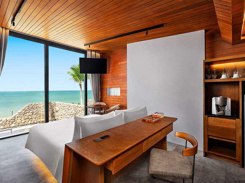 Apartmán Beachfront Pool Villa (SUP, cca 100 m²), klimatizácia, príslušenstvo na prípravu kávy/čaju, minibar, TV, telefón, Wi-Fi, trezor. Sprcha, vaňa, WC. Terasa so súkromným bazénom. Max. 2 dospelí + 1 dieťa.