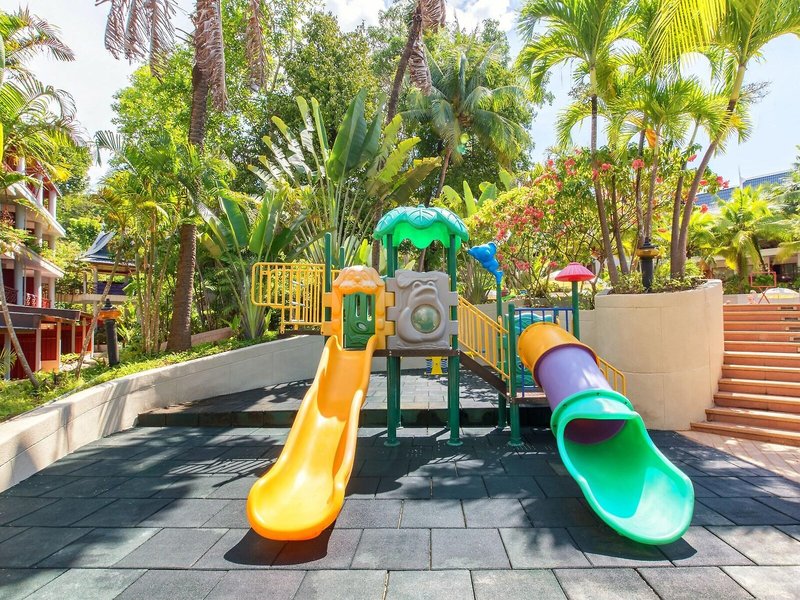 Das bietet Ihre Unterkunft: Das Resort bietet 120 Zimmer und 12 Einzelzimmer und verfügt über einen Aufzug. Die Rezeption ist rund um die Uhr besetzt. Eine Gepäckaufbewahrung, ein Safe und eine Wechselstube gehören zur Einrichtung der Unterbringung. WLAN ist in den öffentlichen Bereichen verfügbar. Hilfestellung bei der Buchung von Ausflügen wird am Tourdesk geboten. Ein Supermarkt und ein Souvenirshop und andere Geschäfte können zum Einkaufen und Bummeln genutzt werden. Ein schöner Garten und ein Spielplatz gehören zum Gelände der Ferienanlage. Zum Parken ihres Autos stehen den Gästen eine Garage (ohne Gebühr) und ein Parkplatz zur Verfügung. Zu den weiteren Angeboten zählen ein 24h-Sicherheitsdienst, ein Babysitterservice, eine Kinderbetreuung, eine Autovermietung, ein Transferservice, ein kostenpflichtiger Zimmerservice, ein Weckdienst, ein Wäscheservice, ein Friseur, eine Münzwäscherei und ein eigener Shuttlebus. Kostenfrei steht Gästen die Tageszeitung zur Verfügung. Im Geschäftsbereich (Business-Center) sind Faxgerät und Projektor vorhanden.