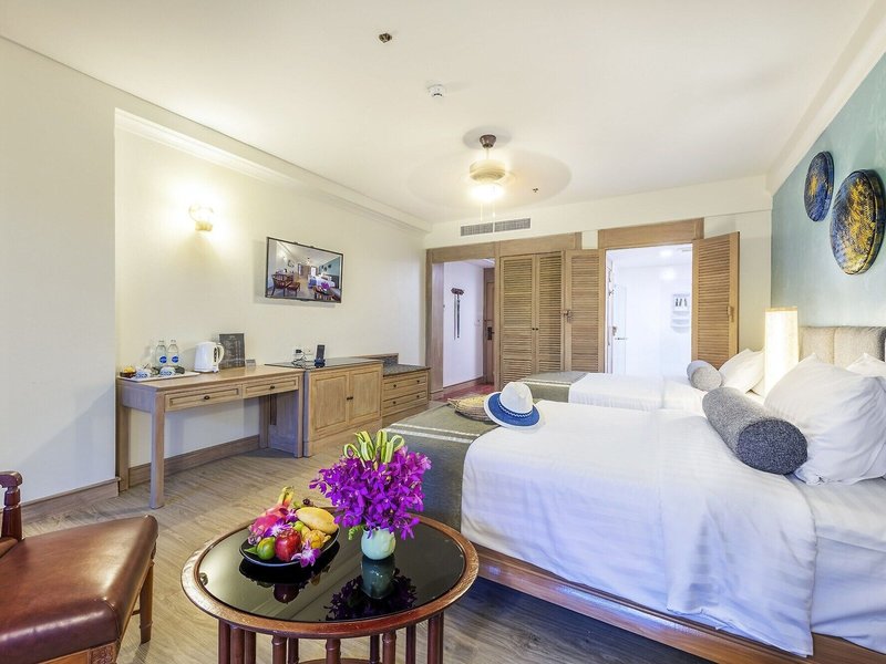 So wohnen Sie: Für angenehmes Raumklima in den Zimmern sorgen eine Klimaanlage und ein Ventilator. Die Gäste können den Gartenblick von Balkon oder Terrasse genießen. Die mit Teppichböden ausgestatteten Zimmer verfügen über ein Kingsizebett und ein Sofabett. Es gibt separate Schlafzimmer. Zustellbetten können angefordert werden. Außerdem sind ein Safe, eine Minibar und ein Schreibtisch verfügbar. Auch ein Kühlschrank, ein Minikühlschrank und eine Tee-/Kaffeemaschine sind vorhanden. Ein Bügelset ist für den zusätzlichen Komfort der Gäste verfügbar. Darüber hinaus sind ein Telefon mit Direktwahl, ein TV-Gerät mit Satelliten-/Kabelempfang, ein Radio, eine Stereoanlage und WiFi (ohne Gebühr) vorhanden. Zu den Vorzügen der Zimmer gehören Hausschuhe. Die Badezimmer sind ausgestattet mit einer Dusche, einer Badewanne und einem Bidet. Für den täglichen Gebrauch stehen ein Haartrockner, Bademäntel und ein Telefon zur Verfügung. Als Besonderheit genießen die Gäste in den Badezimmern Kosmetikartikel und eine Auswahl an Handtüchern. Das Resort bietet Familien- und Nichtraucherzimmer.