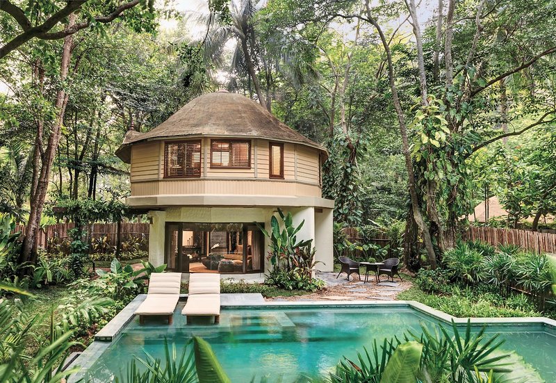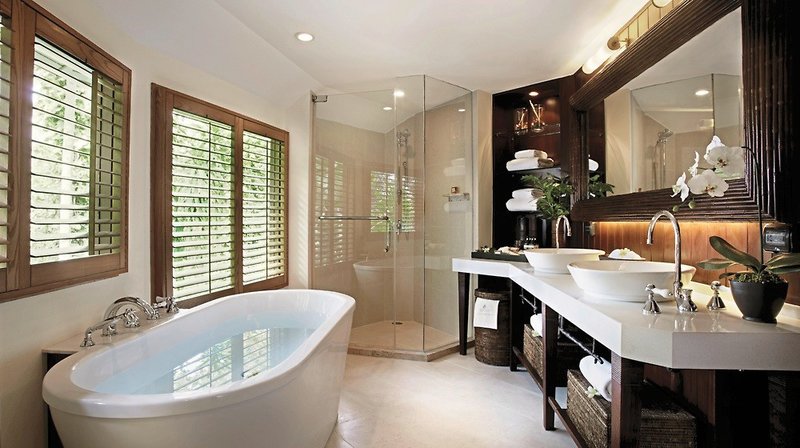 - 101-120 qm, Villa, 2 Etagen, Nichtraucher, 1 separates Schlafzimmer, separater Wohnraum, Dusche, Badewanne, WC, separates WC, Bademantel, Haartrockner, Klimaanlage, Minibar, Safe, TV (Sat-TV, Flachbildschirm), DVD-Player, Kaffee/Tee, Garten (möbliert), Privatpool, hochwertige Badartikel