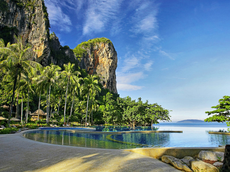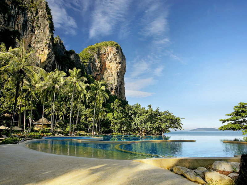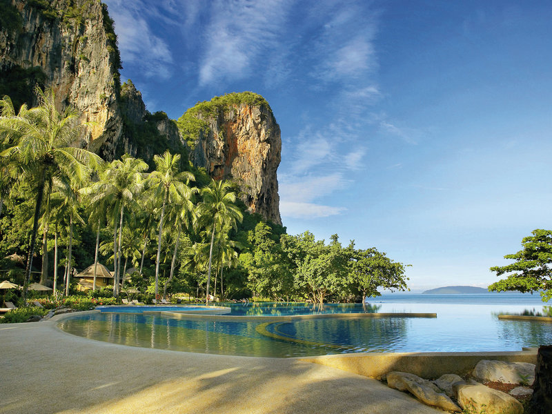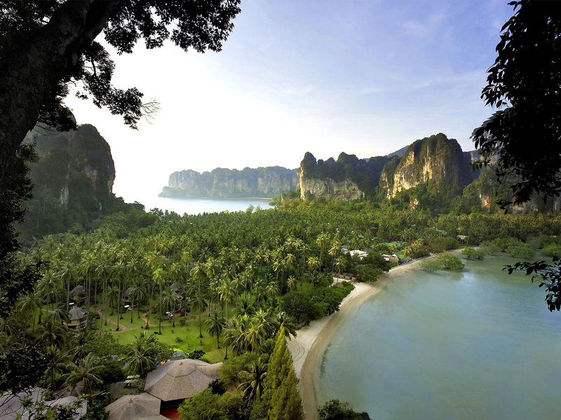 Poloha a okolie Hotel sa nachádza uprostred prírodnej rezervácie na ostrohu, ktorý je prístupný len z mora. Obklopuje ho tropická zelená krajina a tri krásne verejné piesočnaté pláže vrátane pláže Railay. Tieto zátoky sú tiež veľmi obľúbeným cieľom výletov.