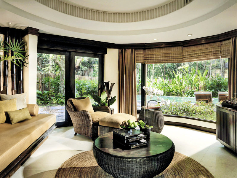 - Pool Pavilion (SUX5), Suite, Nichtraucherzimmer, Gartenseite, Gartenblick, ca. 115 m², letzte Komplettrenovierung 2015, Gesamtanzahl der Räume in diesem Zimmertyp: 2, Aufteilung wie folgt: Wohnzimmer, Maisonette, 1 Schlafzimmer, 1 King Size Bett, 1 Schlafsofa, Babybett: ohne Gebühr, Anfrage notwendig, Klimaanlage: ohne Gebühr, individuell regelbar, kalt, Fußboden: Fliesenboden, Parkett, Safe: ohne Gebühr, Deckenventilator, Sofa, Schreibtisch, Kühlschrank: ohne Gebühr, Kaffee-/Teezubereiter, Wasserkocher, Minibar: gegen Gebühr, Wasser: ohne Gebühr, Minibarauffüllung: täglich, Telefon, Internet: WLAN/WiFi: ohne Gebühr, Fernseher: Flatscreen, im Wohnbereich, im Schlafzimmer, Kabel-TV, Roomservice: täglich, gegen Gebühr, Reinigungsservice: täglich, ohne Gebühr, Dusche, separate Dusche, Badewanne, WC, Bademantel: ohne Gebühr, Slipper: ohne Gebühr, Föhn, Terrasse: mit Liegen, mit Sitzgelegenheit, mit Private Pool