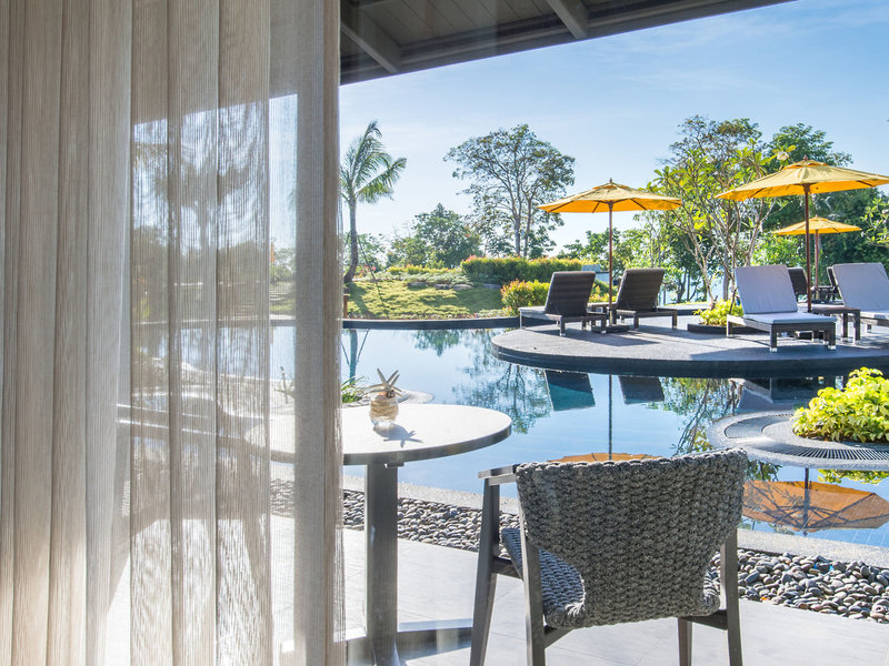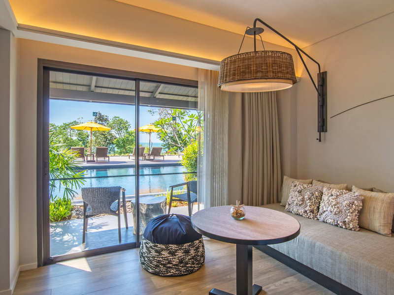 - Garden Pool Villa (VIX1), Villa, Nichtraucherzimmer, Landseite, Gartenseite, Gartenblick, ca. 118 m², letzte Komplettrenovierung 2022, letzte Teilrenovierung 2022, Gesamtanzahl der Räume in diesem Zimmertyp: 1, Aufteilung wie folgt: kombiniertes Wohn-/Schlafzimmer, 1 Schlafzimmer, 1 King Size Bett, Babybett: ohne Gebühr, Anfrage & Reservierung notwendig, Klimaanlage: ohne Gebühr, individuell regelbar, Fußboden: Fliesenboden, Safe: ohne Gebühr, Deckenventilator, Sofa, Schreibtisch, Kochnische, Kühlschrank: gegen Gebühr, Mikrowelle, Kaffee-/Teezubereiter, Wasserkocher, Minibar: gegen Gebühr, Softdrinks: gegen Gebühr, Wasser: ohne Gebühr, alkoholische Getränke: gegen Gebühr, Snacks: gegen Gebühr, Telefon, Internet: WLAN/WiFi: ohne Gebühr, Fernseher: Flatscreen, Roomservice: gegen Gebühr, Reinigungsservice: täglich, ohne Gebühr, Dusche, separate Dusche, Außendusche, Badewanne, separates WC, Bademantel: ohne Gebühr, Slipper: ohne Gebühr, Föhn, Kosmetikspiegel, Terrasse: mit Liegestühlen, mit Liegen, mit Private Pool, mit Privat-Garten
