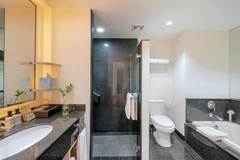 - 41-45 m2, dvojlôžková, superior, výhľad na bazén, písací stôl, sprcha, vaňa, WC, fén, klimatizácia, minibar, trezor, TV (plochá obrazovka), WiFi, káva/čaj, chladnička, balkón alebo terasa