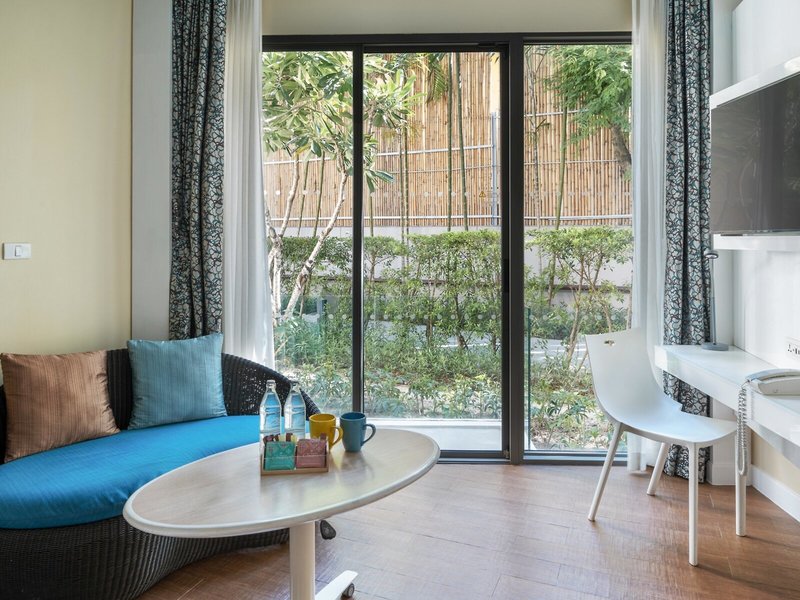 - Superior (DZX1), Doppelzimmer, im Hauptgebäude, Gartenblick, ca. 24 m², Gesamtanzahl der Räume in diesem Zimmertyp: 1, Aufteilung wie folgt: kombiniertes Wohn-/Schlafzimmer, Klimaanlage: ohne Gebühr, individuell regelbar, kalt, Fußboden: Laminat, Safe: ohne Gebühr, Deckenventilator, Schreibtisch, Kühlschrank: ohne Gebühr, Kaffee-/Teezubereiter, Telefon, Internet: WLAN/WiFi: ohne Gebühr, Fernseher: Flatscreen, im Schlafzimmer, deutsches Programm, Deutsche Welle, Kabel-TV, Roomservice: täglich 07:00 Uhr - 20:00 Uhr, gegen Gebühr, Reinigungsservice: täglich, ohne Gebühr, Dusche, WC, Bad durch Glaswand getrennt, Föhn, Balkon: mit Sitzgelegenheit