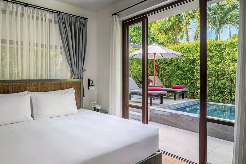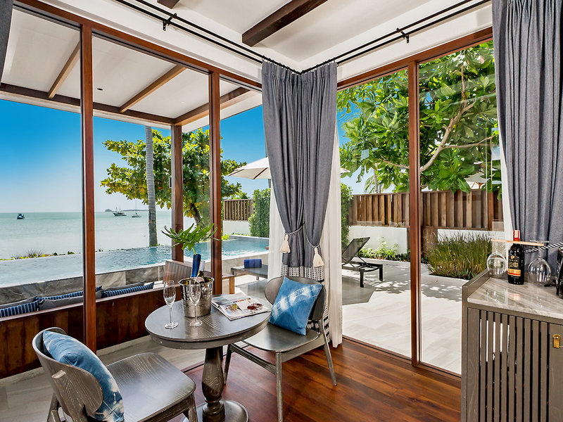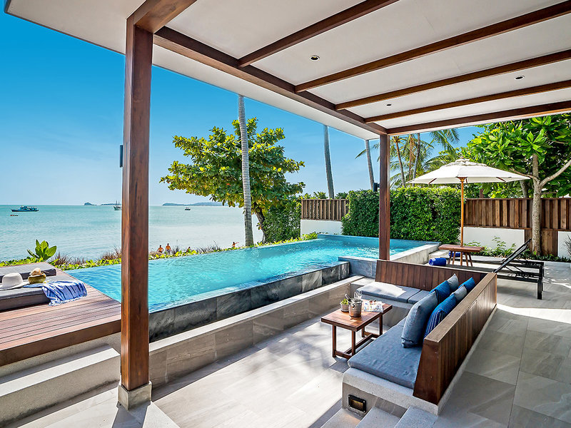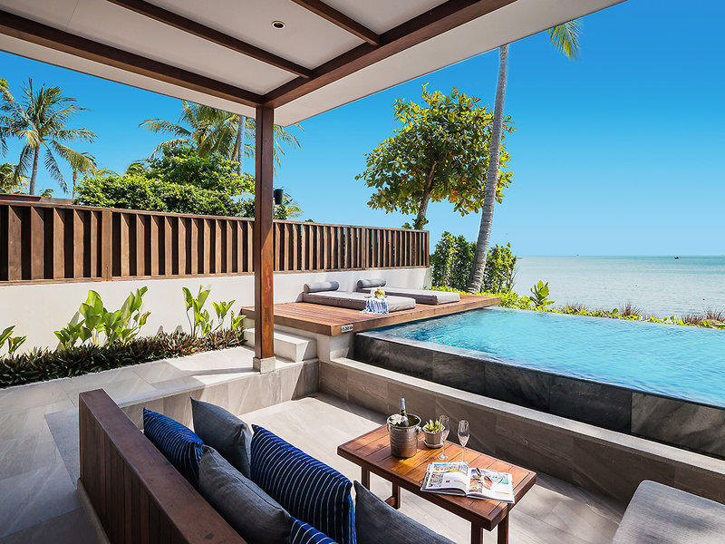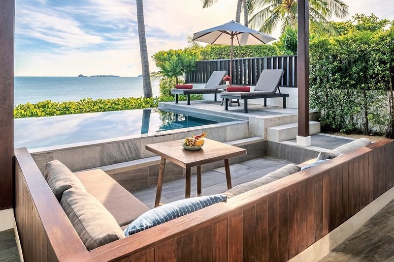 Sea-Breeze-Pool-Villa (VIP, ca. 120 qm), Klimaanlage, Minibar, Kaffee-/Teeset, Telefon, TV, Safe. Bad, Dusche, WC, Föhn. Terrasse, Gartenblick, priv. Pool. Max. 2E+2K