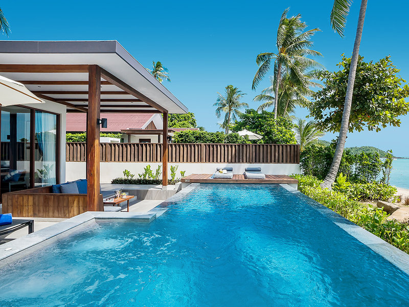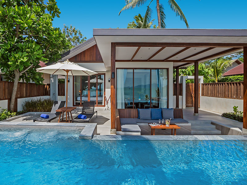 Sea-Breeze-Pool-Villa (VIP, ca. 120 qm), Klimaanlage, Minibar, Kaffee-/Teeset, Telefon, TV, Safe. Bad, Dusche, WC, Föhn. Terrasse, Gartenblick, priv. Pool. Max. 2E+2K