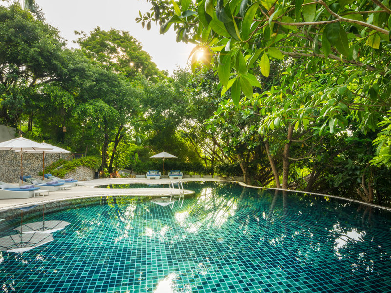 - Two Bedroom Deluxe Pool Villa (VIX4), Villa, Poolseite, Bergseite, Poolblick, ca. 200 m², letzte Komplettrenovierung 2025, Gesamtanzahl der Räume in diesem Zimmertyp: 4, Aufteilung wie folgt: Wohnzimmer, 2 Schlafzimmer, 2 Einzelbetten, 1 Doppelbett, 1 Schlafsofa, 1 Zustellbett, Babybett: ohne Gebühr, Klimaanlage: ohne Gebühr, individuell regelbar, Fußboden: Parkett, Safe: ohne Gebühr, Deckenventilator, Sofa, Schreibtisch, Bügeleisen, Bügelbrett, Kühlschrank, Nespressomaschine, Kaffee-/Teezubereiter, Minibar: gegen Gebühr, Softdrinks: gegen Gebühr, Wasser: ohne Gebühr, alkoholische Getränke: gegen Gebühr, Snacks: gegen Gebühr, Minibarauffüllung: täglich, Telefon, Internet: WLAN/WiFi: ohne Gebühr, Fernseher: Flatscreen, im Wohnbereich, im Schlafzimmer, deutsches Programm, Sat-TV, Roomservice: 24 Stunden, gegen Gebühr, Reinigungsservice: täglich, gegen Gebühr, separate Dusche, Außendusche, Badewanne, WC, separates WC, Bademantel: ohne Gebühr, Slipper: ohne Gebühr, 2 Bäder, Föhn, Kosmetikspiegel, Terrasse: mit Liegen, mit Sitzgelegenheit, Veranda, mit direktem Poolzugang, mit Dusche, mit Private Pool