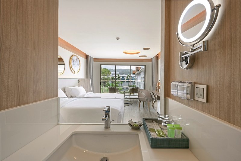 - 31-35 m², Dvojlôžková izba, Deluxe, Poschodie, Spodné, Výhľad na bazén, Posedenie, Sprcha alebo vaňa, WC, Fén, Klimatizácia, Trezor, TV, Počet izieb: 134