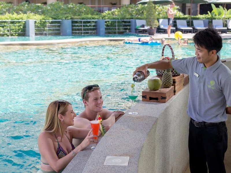 Lage & Umgebung Das Hotel befindet sich in einer der aufregendsten Strandstädte auf Phuket. Es liegt nur wenige Schritte von einem goldenen Sandstrand entfernt und bietet eine atemberaubende Sicht auf die sichelförmige Bucht von Patong. Zudem gibt es ein Einkaufszentrum, ein Restaurant und ein Unterhaltungsviertel in der Umgebung des Hotels. Dolphin Junction liegt ca. 100 m entfernt und das Central Festival kann nach rund 20 Gehminuten erreicht werden. Der Chalong Tempel und das Simon Cabarete liegen beide etwa 30 Gehminuten entfernt. Der Strand Karon kann nach ca. 10 Gehminuten erreicht werden. Der internationale Flughafen Phuket liegt in etwa 45 km Entfernung.